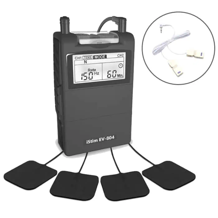 The iStim EV-804 is a clinical-grade TENS/EMS unit that, when paired with a compatible ear clip electrode, doubles as a powerful taVNS (transcutaneous auricular vagus nerve stimulation) system.